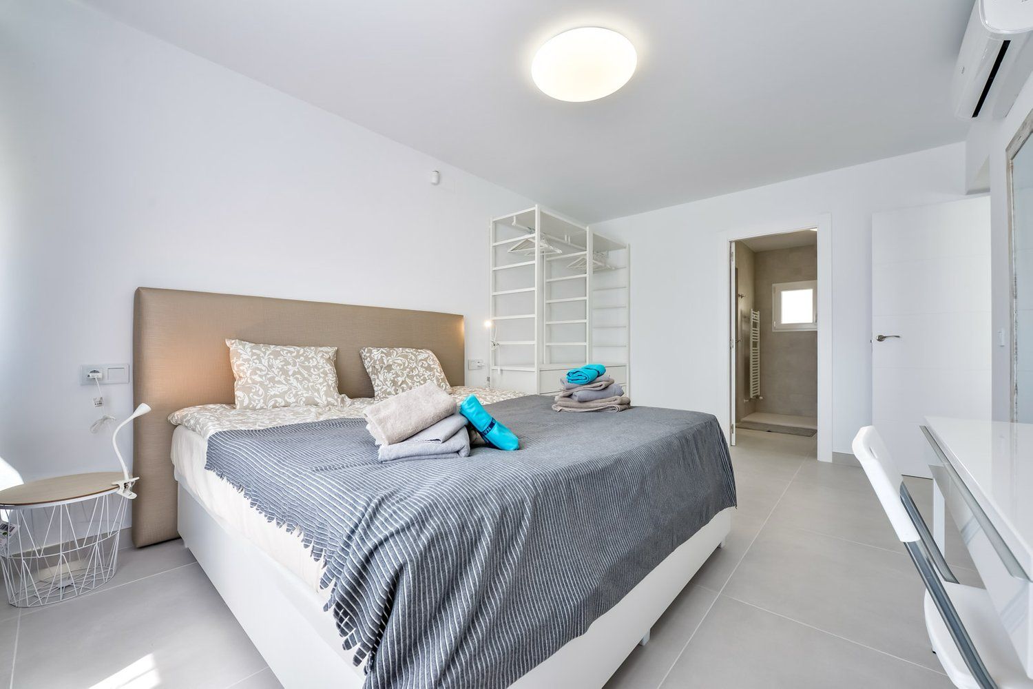 La villa dispone de 3 dormitorios y 3 baños modernos, todos con duchas y acabados de alta calidad. Además, ofrece una amplia terraza adicional, perfecta para relajarse o disfrutar de comidas al aire libre.