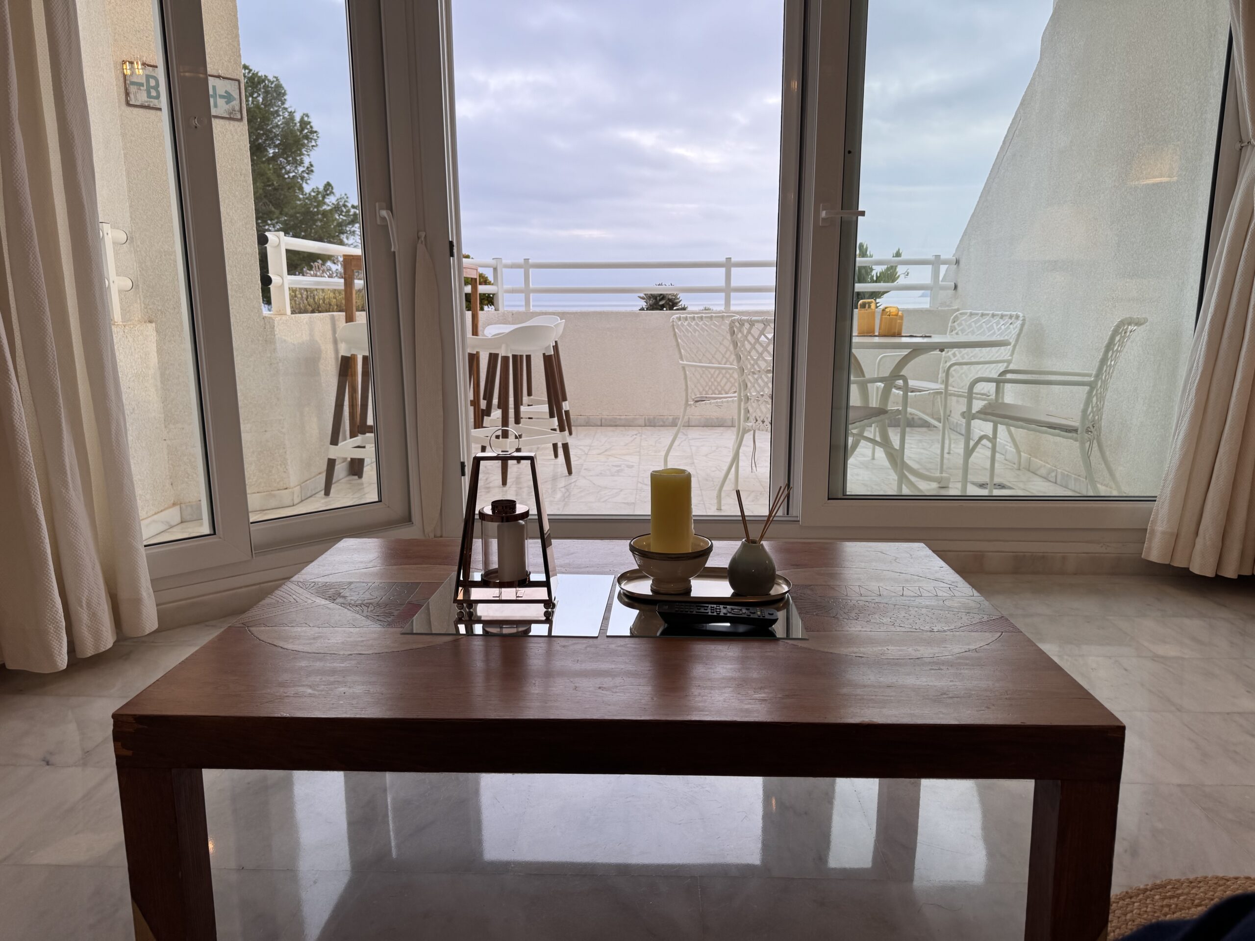 Apartamento en excelente estado de 116 metros cuadrados construidos, ubicado en un enclave único y paradisíaco en el Pueblo Mascarat, Altea. Es una vivienda exterior en primera planta con ascensor y orientación sur, lo que le aporta mucha luz natural.