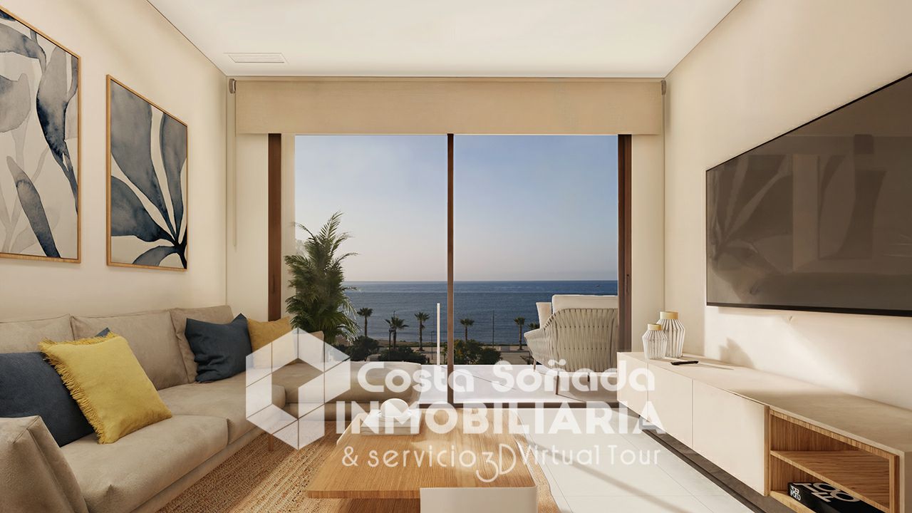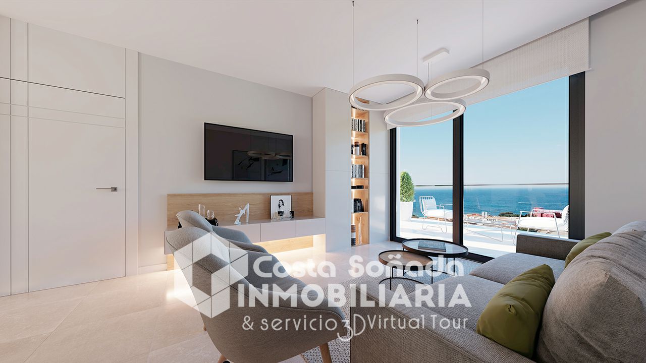 Exclusivo apartamento de obra nueva en primera línea de mar, situado en la emblemática Playa Mallaeta de La Villajoyosa, con impresionantes vistas directas al Mediterráneo.