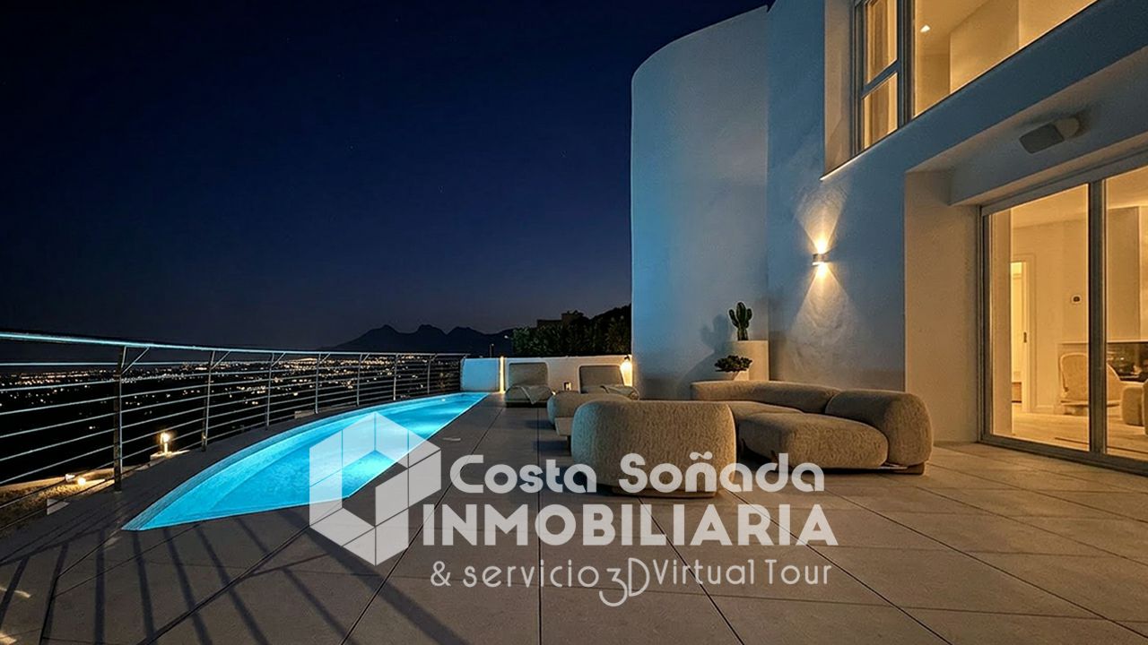 En la segunda planta se encuentran tres dormitorios orientados al mar, cada uno con su propio baño en suite. Cuenta con sala de billar, varios salones, despacho y una impresionante zona de día que ocupa toda una planta y que comunica directamente con la terraza y piscina. El ascensor es un elemento principal de la misma, ya que te permite moverte por sus cuatro niveles cómodamente.