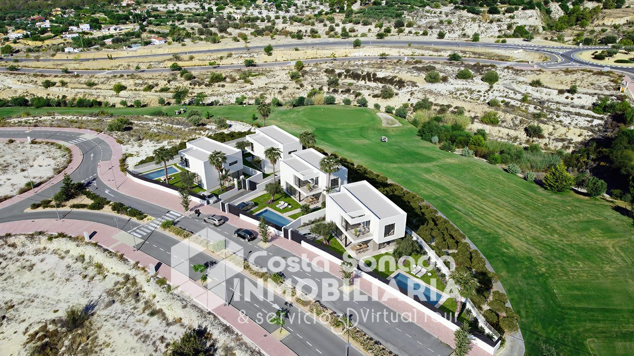 Exclusiva villa independiente de obra nueva ubicada en el prestigioso entorno de Alfarella Golf, en el Balcón de Finestrat, una zona tranquila y privilegiada con espectaculares vistas y excelente conexión con Benidorm y la costa.