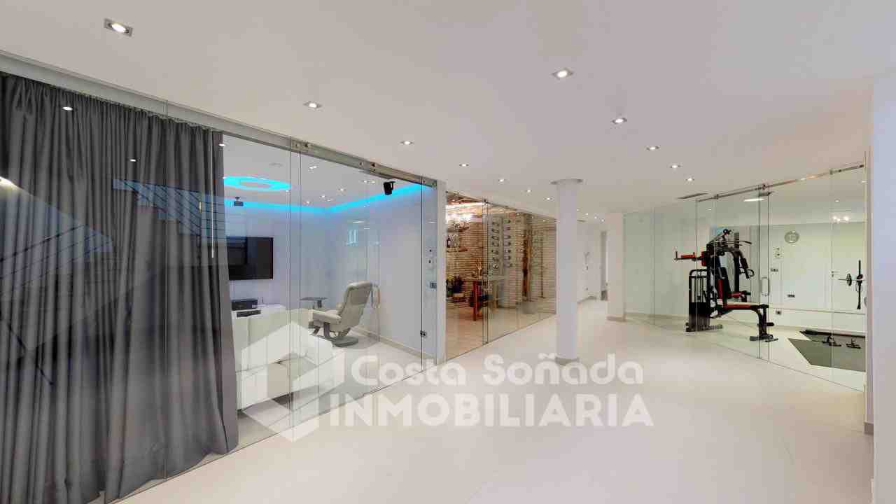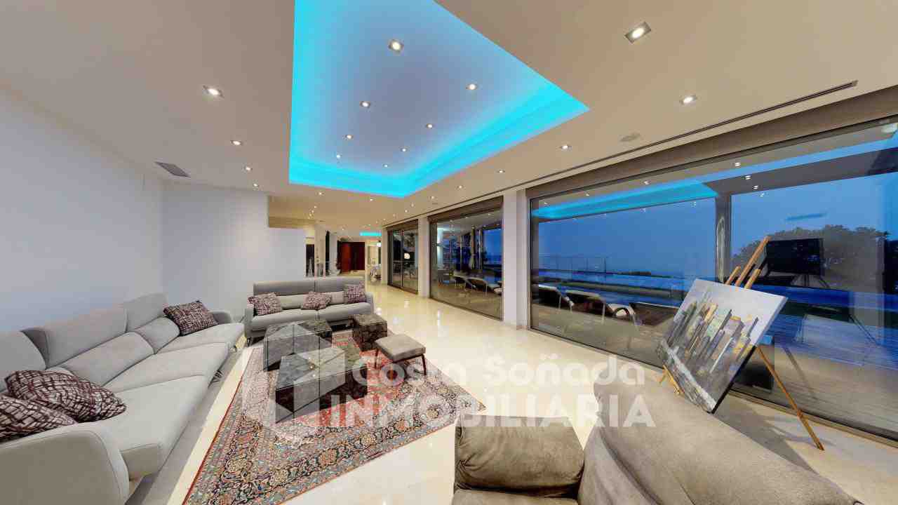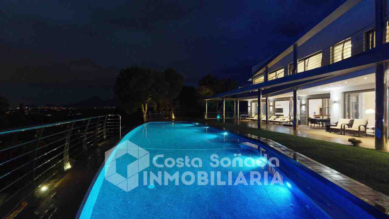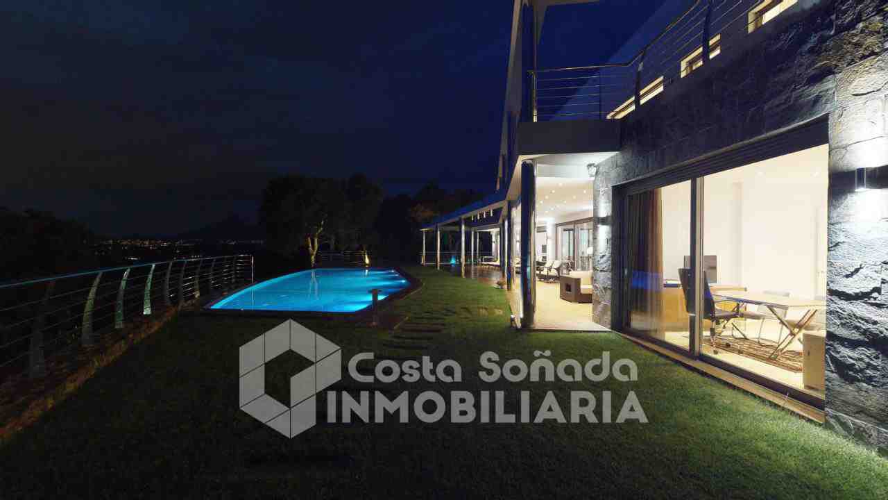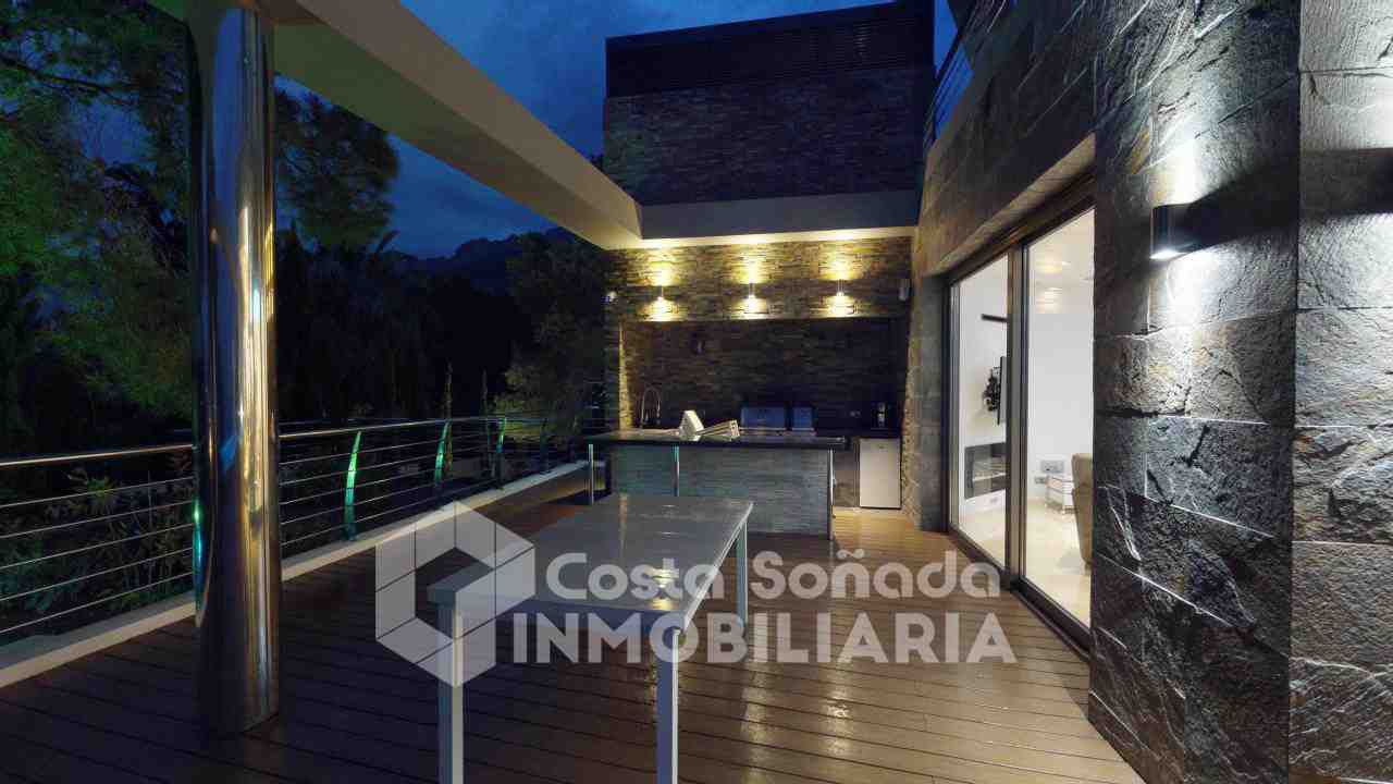 La joya de esta propiedad es su impresionante terraza con piscina infinita y cocina de verano, donde podrás relajarte mientras admiras las vistas panorámicas. El jardín, fácil de mantener, está diseñado con césped artificial y vegetación mediterránea, creanEdo un ambiente perfecto para disfrutar del clima cálido. También incluye una sala de cine, bodega y un estudio que se adapta a tus necesidades.