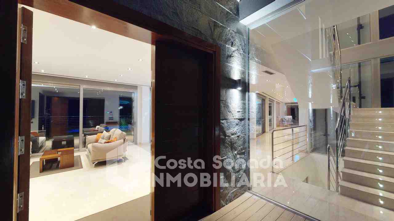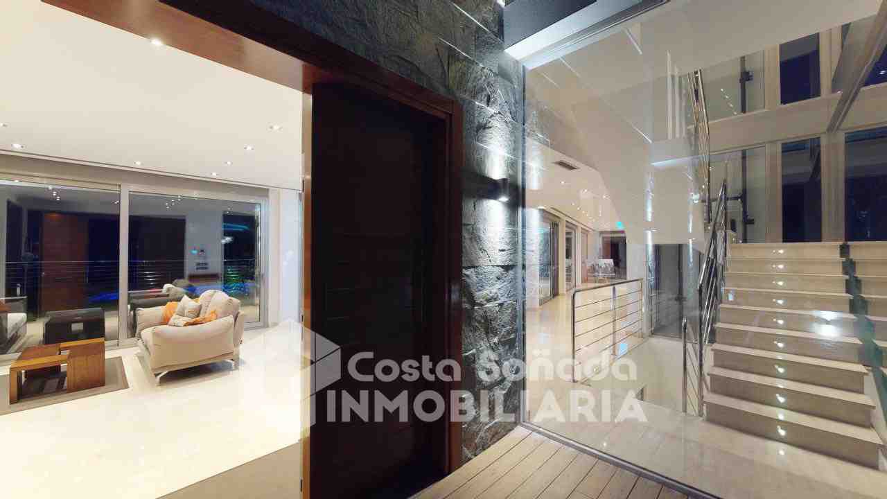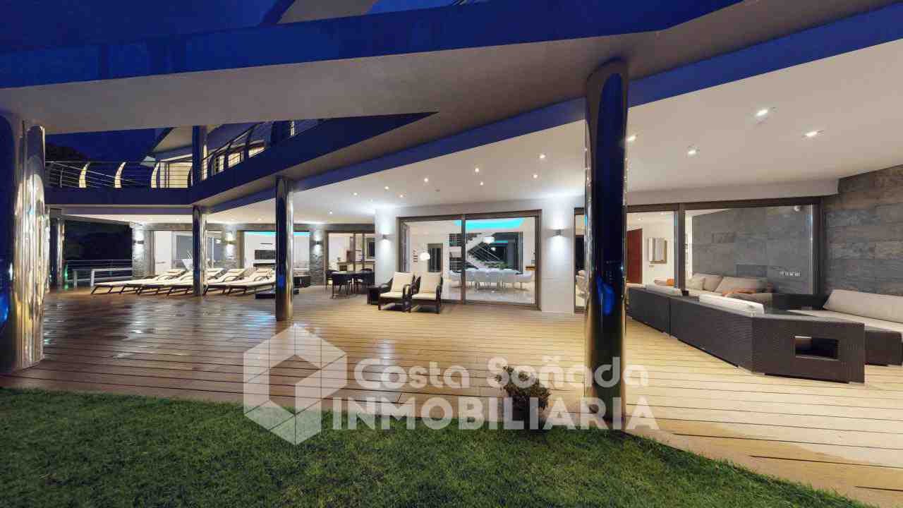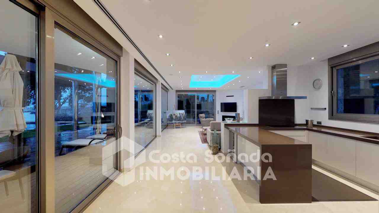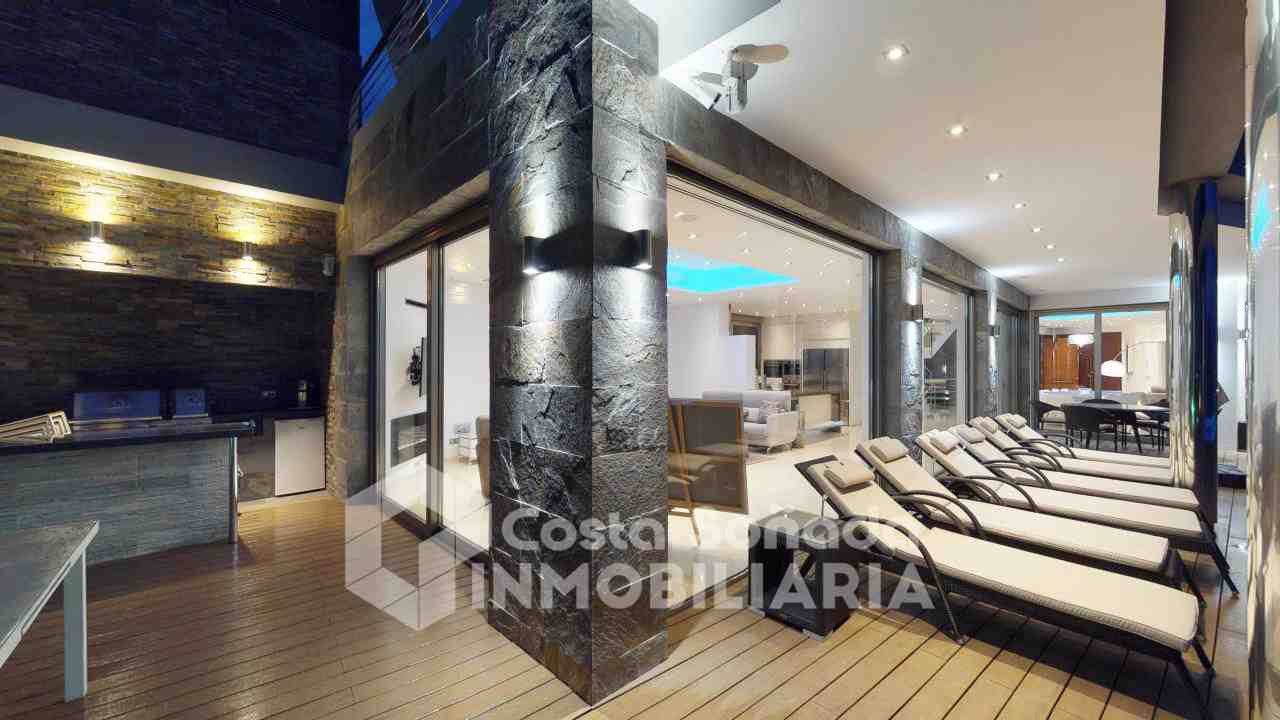 La joya de esta propiedad es su impresionante terraza con piscina infinita y cocina de verano, donde podrás relajarte mientras admiras las vistas panorámicas. El jardín, fácil de mantener, está diseñado con césped artificial y vegetación mediterránea, creanEdo un ambiente perfecto para disfrutar del clima cálido. También incluye una sala de cine, bodega y un estudio que se adapta a tus necesidades.