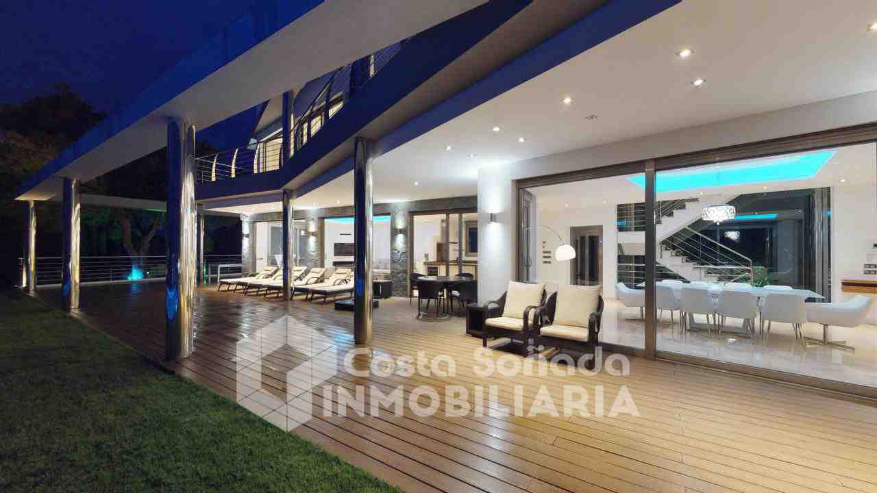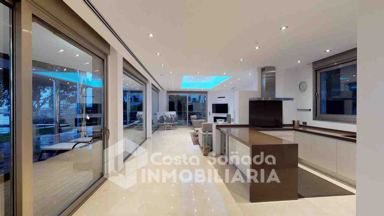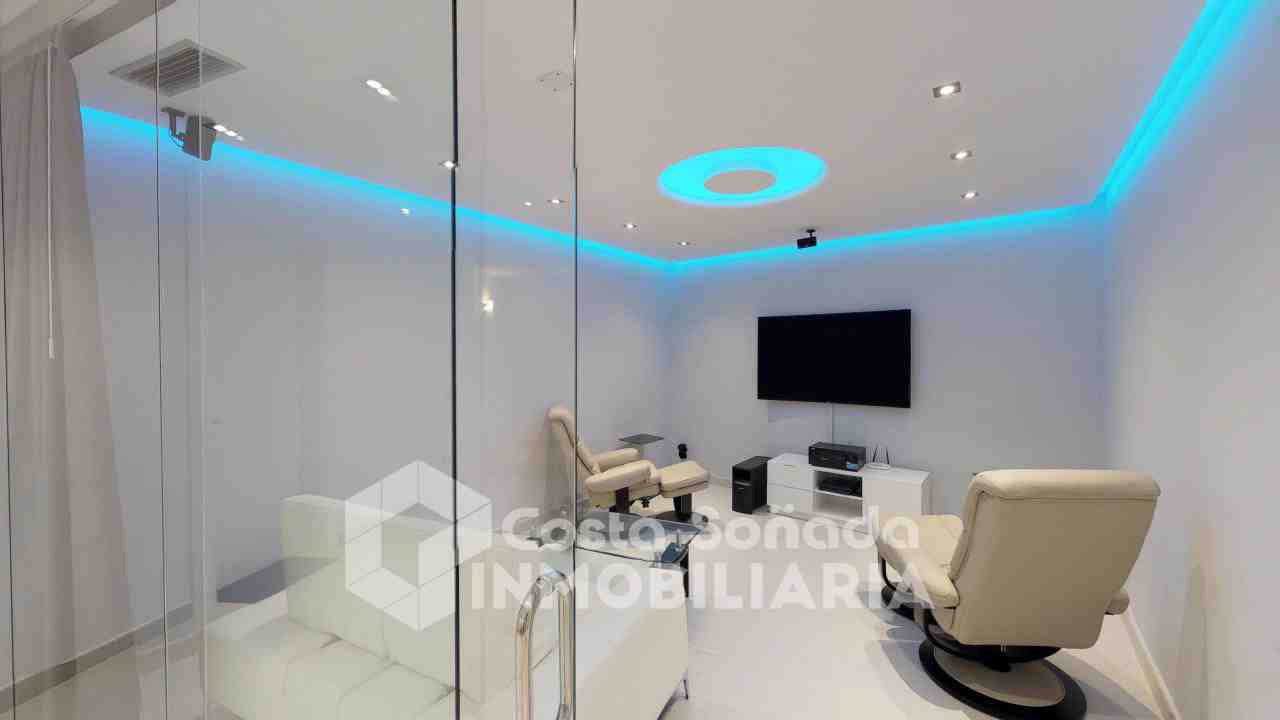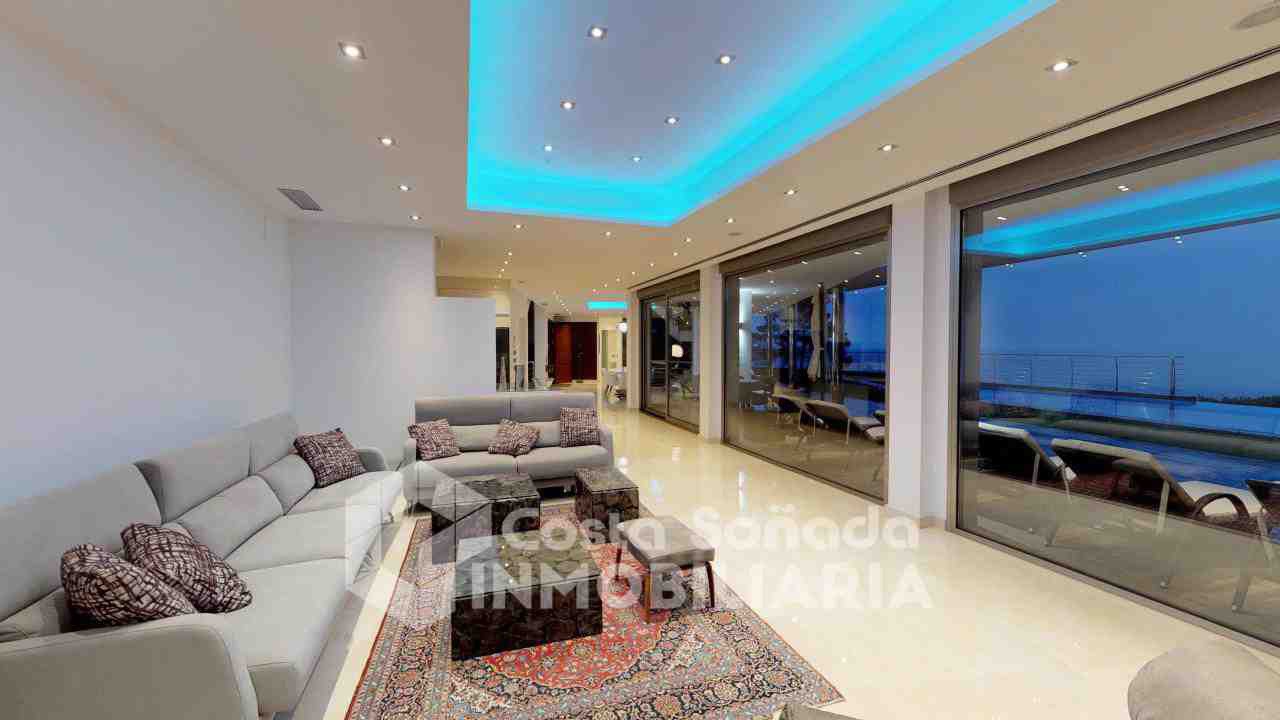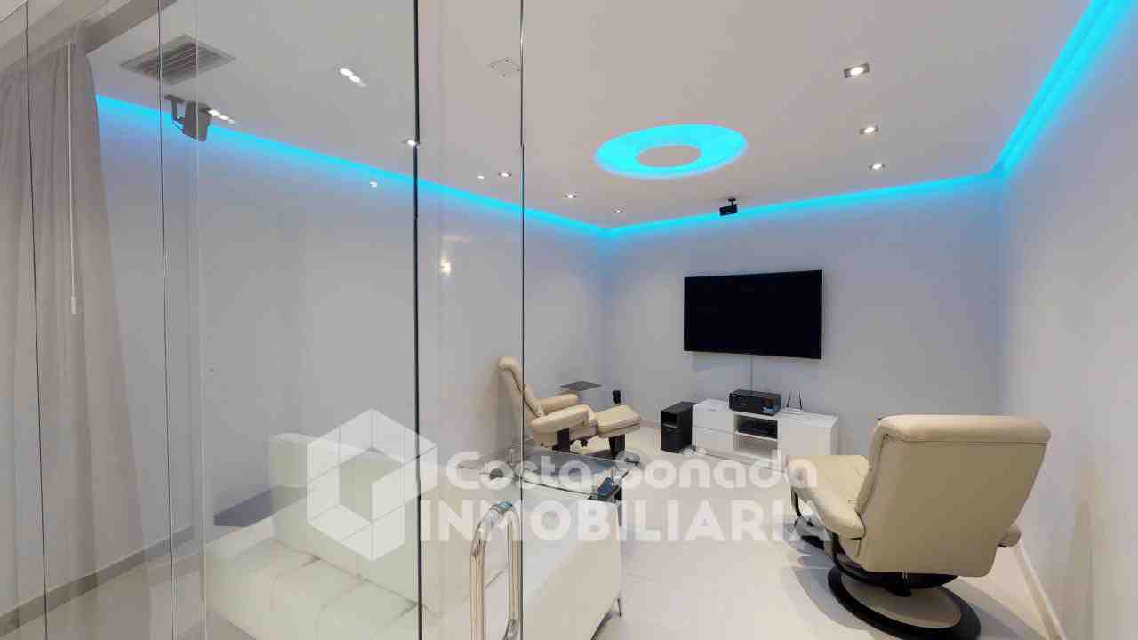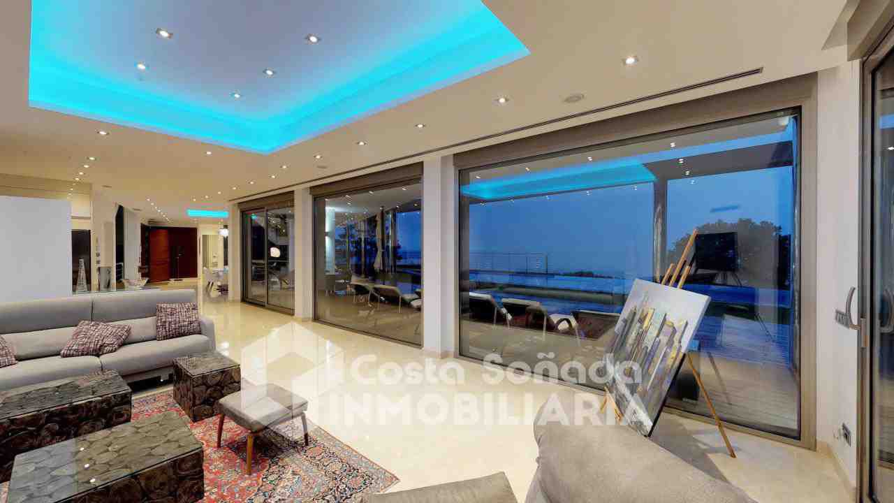 La joya de esta propiedad es su impresionante terraza con piscina infinita y cocina de verano, donde podrás relajarte mientras admiras las vistas panorámicas. El jardín, fácil de mantener, está diseñado con césped artificial y vegetación mediterránea, creanEdo un ambiente perfecto para disfrutar del clima cálido. También incluye una sala de cine, bodega y un estudio que se adapta a tus necesidades.