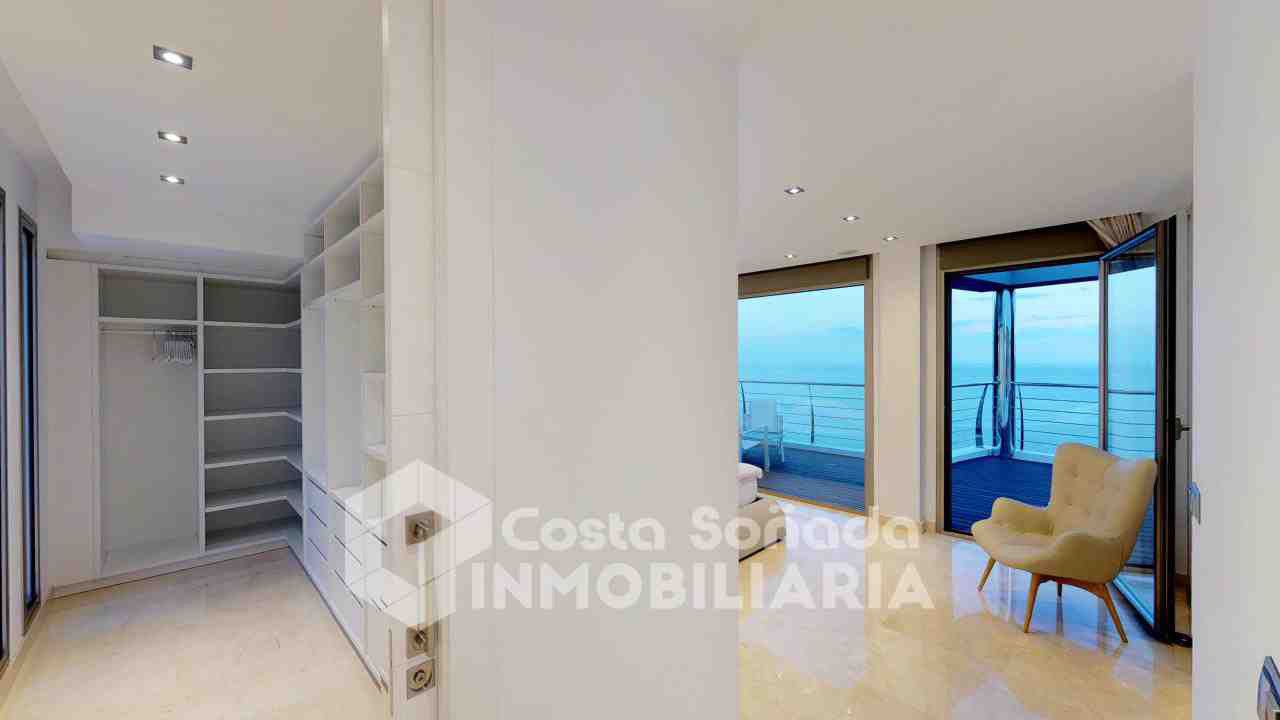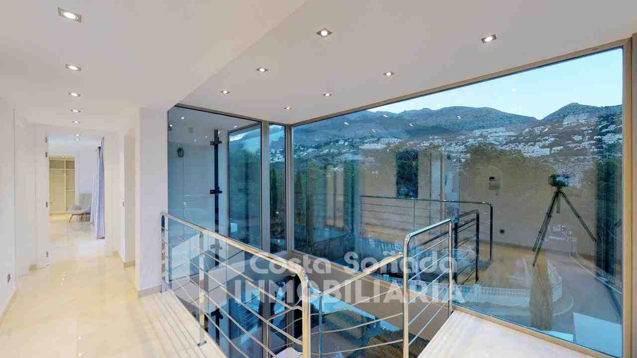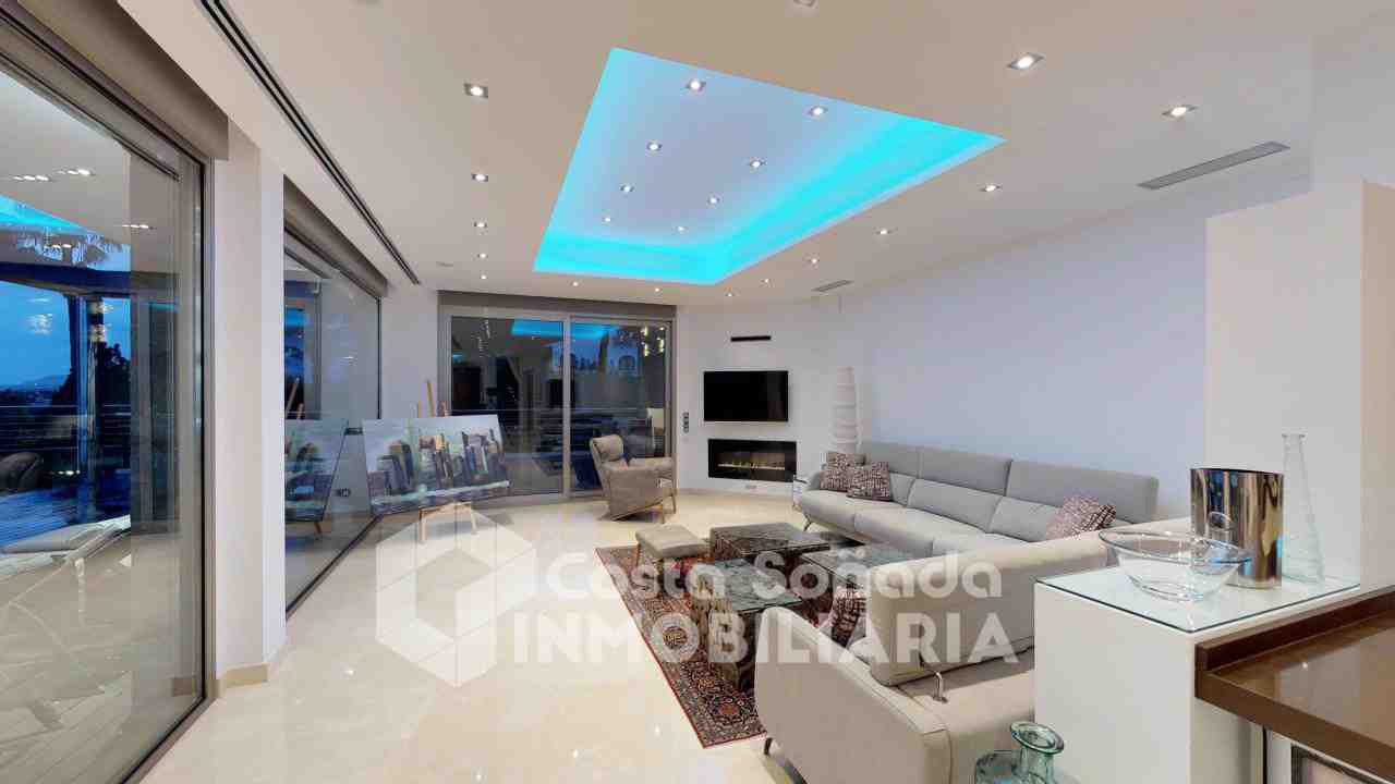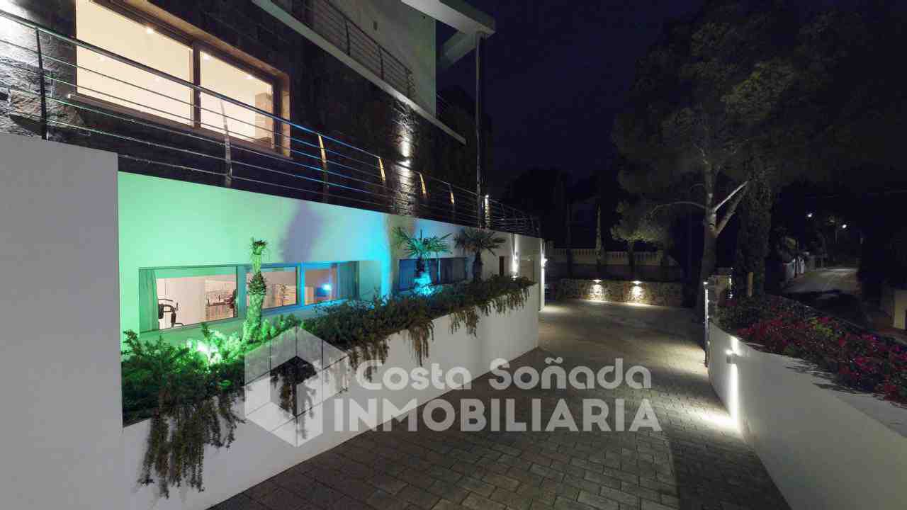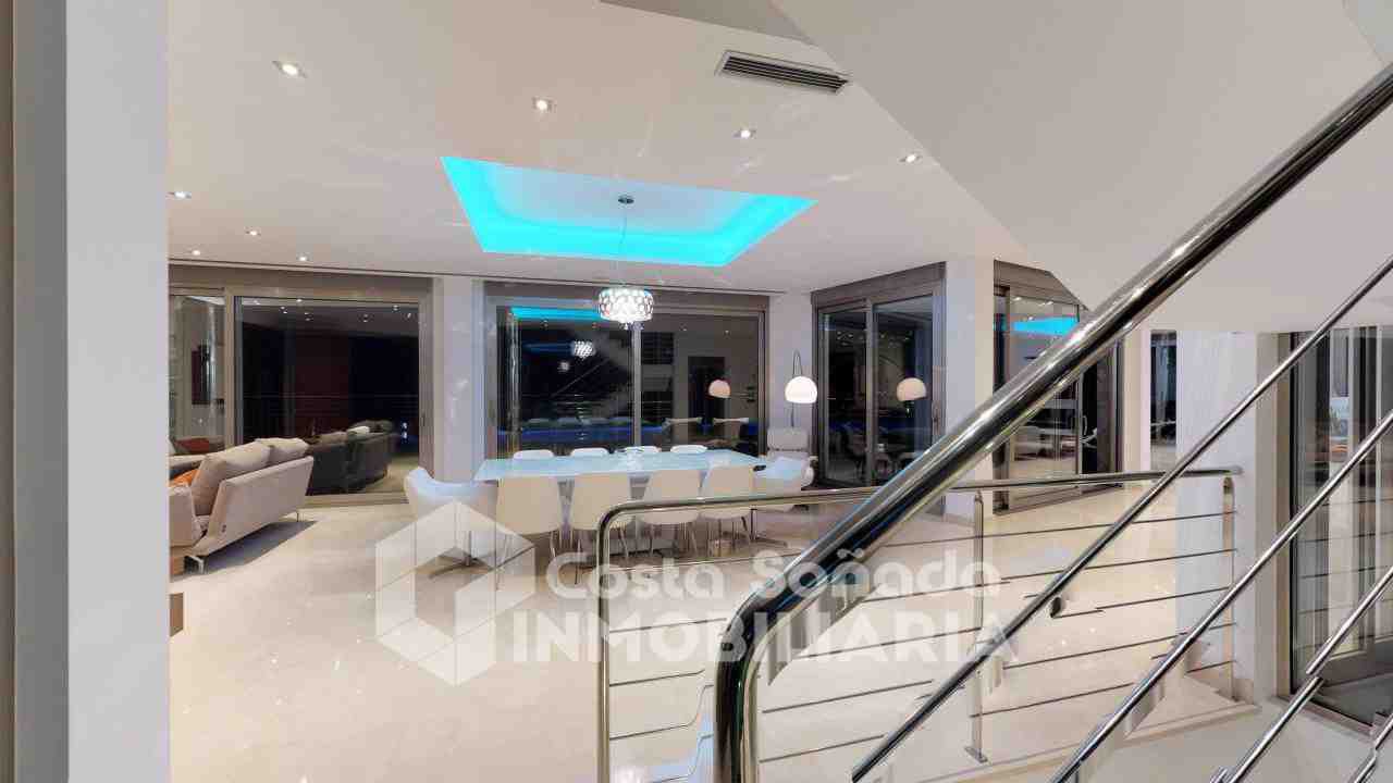 La joya de esta propiedad es su impresionante terraza con piscina infinita y cocina de verano, donde podrás relajarte mientras admiras las vistas panorámicas. El jardín, fácil de mantener, está diseñado con césped artificial y vegetación mediterránea, creanEdo un ambiente perfecto para disfrutar del clima cálido. También incluye una sala de cine, bodega y un estudio que se adapta a tus necesidades.